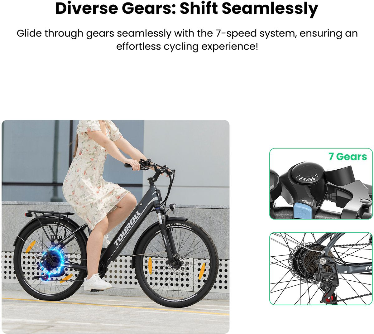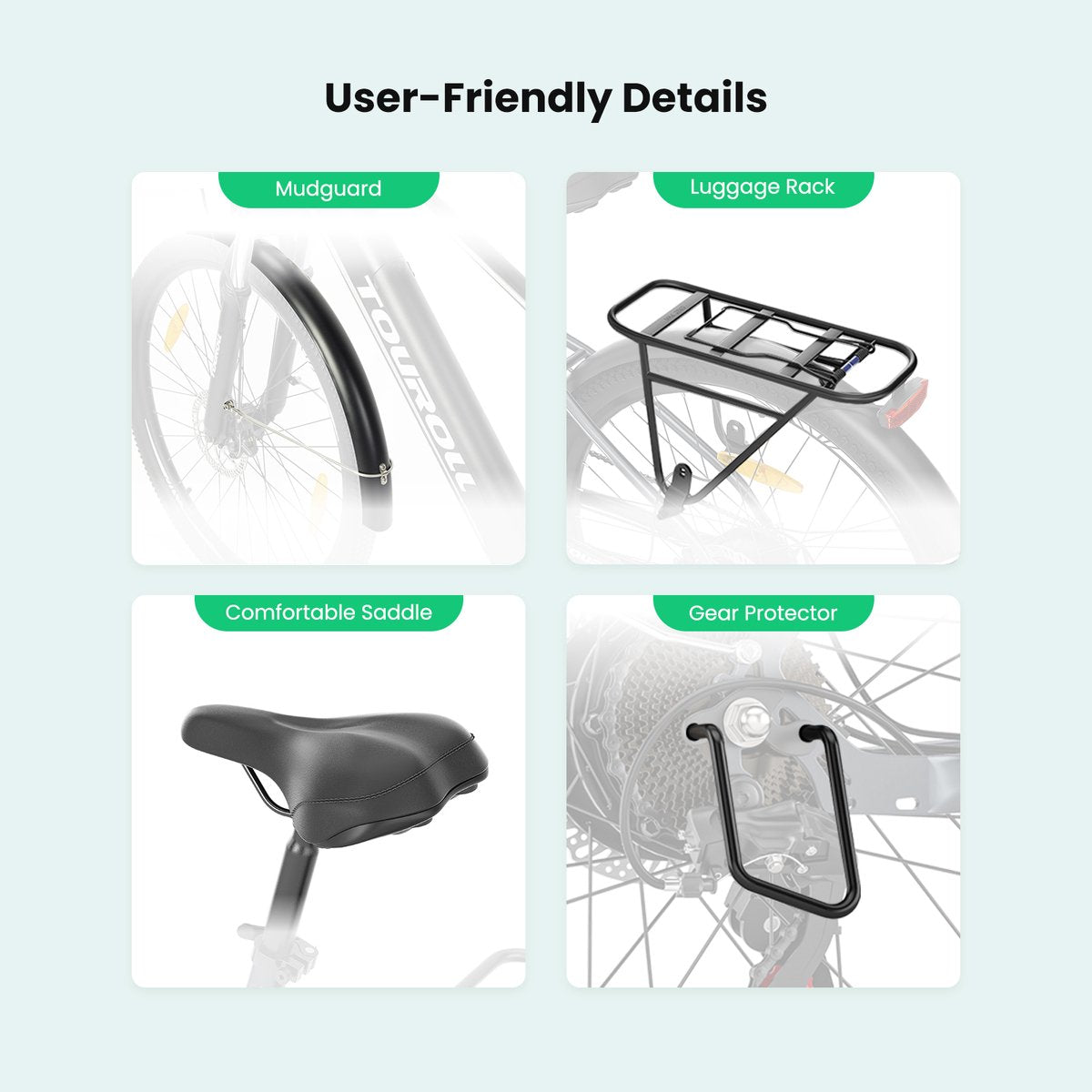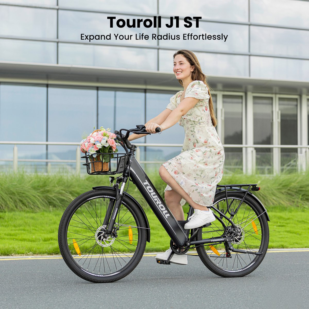 Touroll J1 ST 27,5 inch Trekking Bike met 250W Motor, 36V 15.6Ah Batterij, Max 100km Bereik, 1.8" LCD Display Shimano 7-Speed Schijfrem