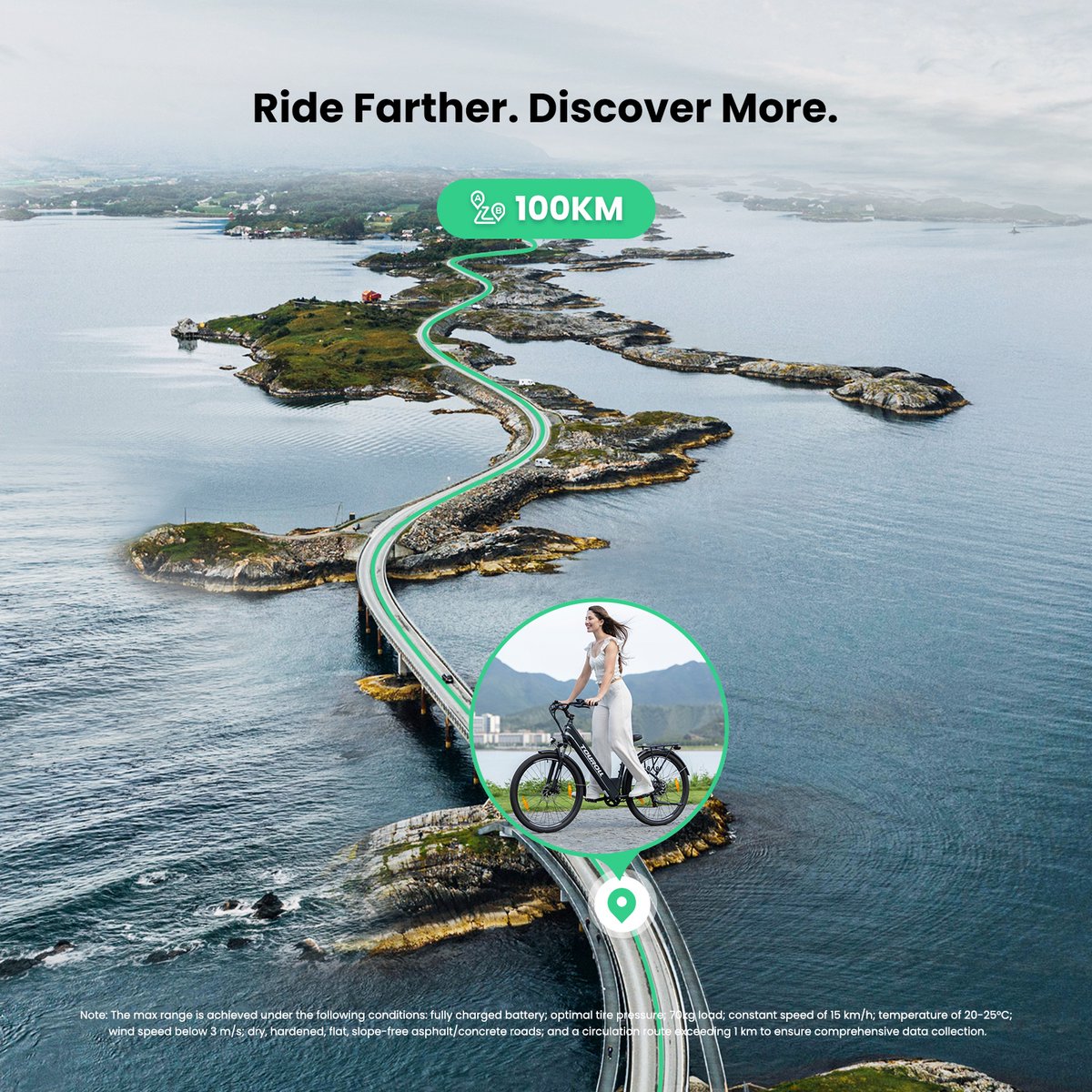 De J1 ST e-bike is uitgerust met een vervangbare 561,6 Wh lithium-ion batterij en heeft een maximaal bereik van 100 km in ondersteuningsmodus, dus of je nu dagelijks fietst of een langeafstandsfietsavontuur onderneemt, hij is er klaar voor. Met de J1 ST e-bike kun je genieten van een probleemloze rijervaring.
